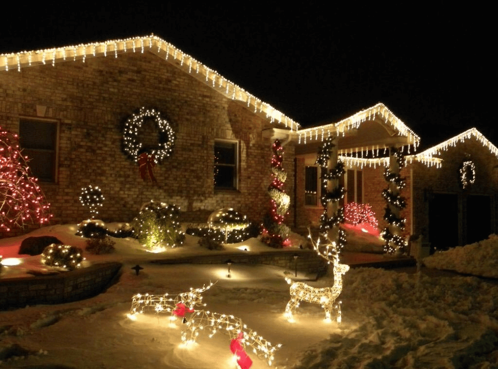 Гирлянды хорошо подходят для наружного украшения дома, придомовой территории.