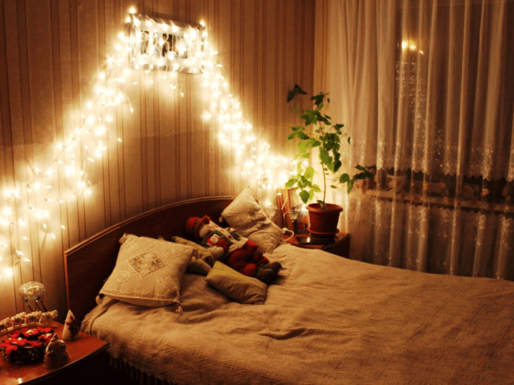 Гирлянды можно использовать круглый год, а не только зимой. Это хороший, недорогой способ создать праздничную атмосферу. Также гирляндами оформляются зеркала, картины, дверные проемы, лестницы, шкафы.