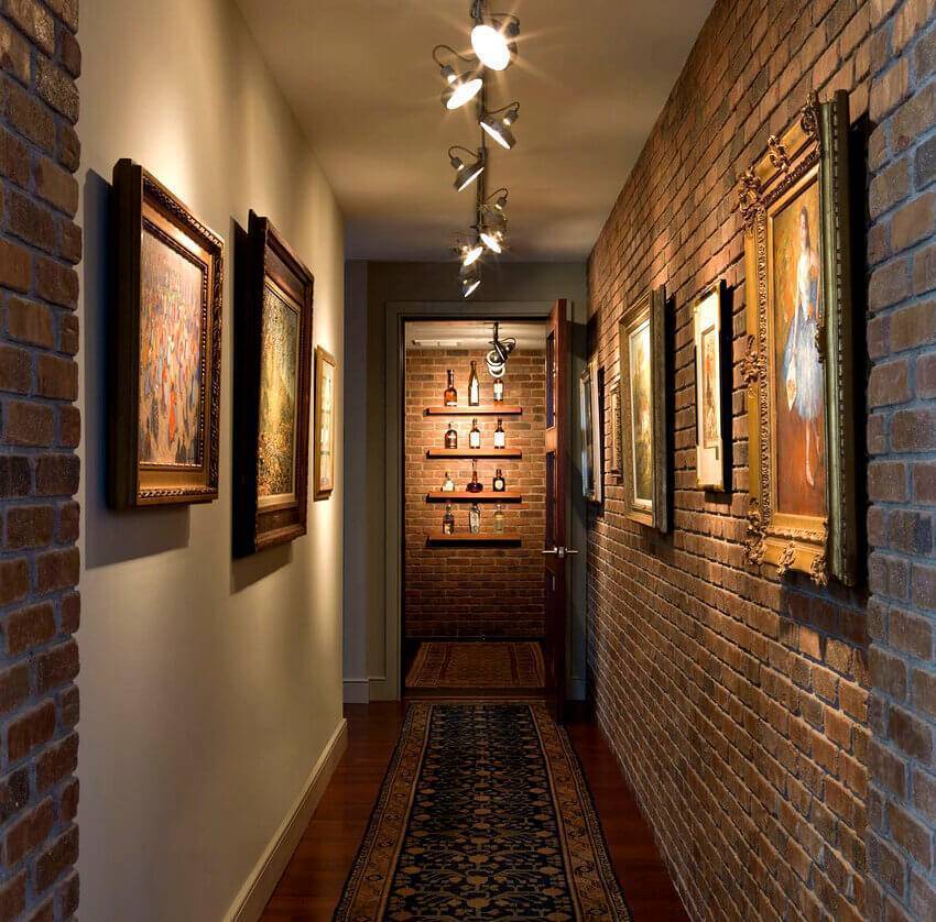 Картины, постеры, панно используются для украшения больших, длинных коридоров и прихожих. Если коридор узкий и заканчивается стенкой, то повешенная на нее освещенная крупная картина зрительно сузит пространство.