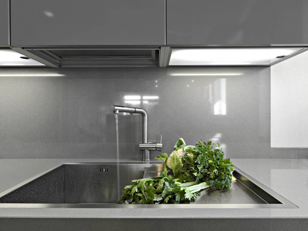 Если расстояние от светильников до рабочей поверхности невелико, то коэффициентом рассеивания можно считать 1,5. В этом случае две трети света дойдет до столешницы. Чем дальше светильники и поверхность расположены друг от друга, тем мощнее потребуются приборы. Исключение — светлые или зеркальные фартуки. Они идеальны, потому что значительно увеличивают освещенность рабочей области.