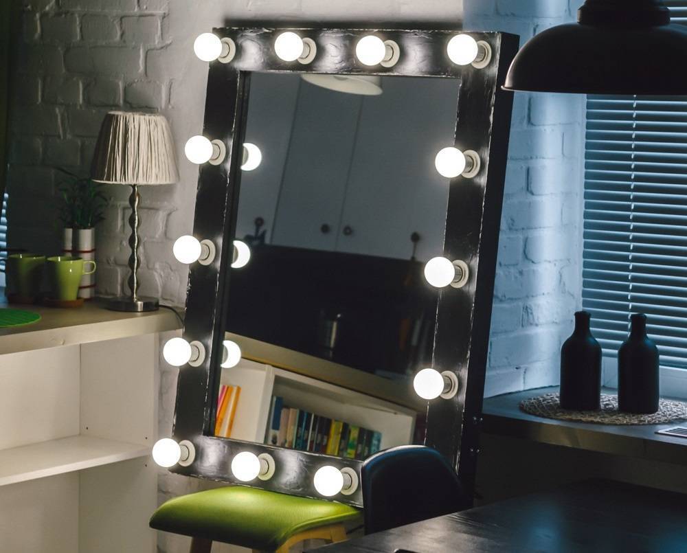 Модные сейчас гримерные зеркала со встроенными в раме LED-лампами можно заказать или сделать самостоятельно, встроив цоколи в стойки фанерной или деревянной рамы.