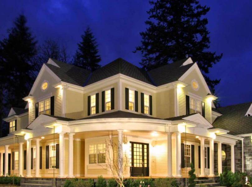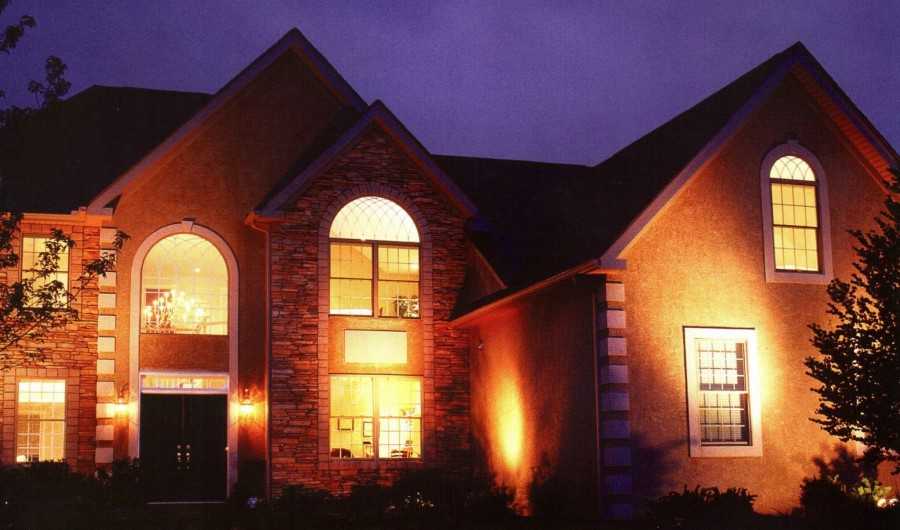 Общий вид участка и внешний вид дома зависят от того, какой яркости, температуры свечения будут выбранные светильники