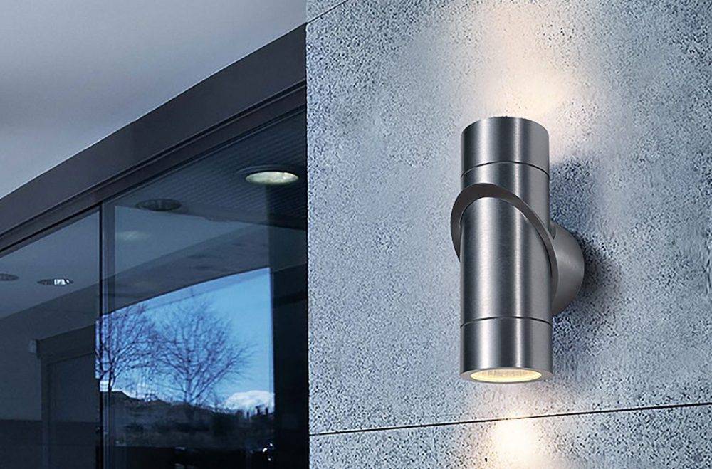 Наиболее мощные, похожие на прожекторы устанавливаются либо на крыше дома, либо на земле у основания. Первый вариант направляется вниз вертикально по стене, второй вид направлен так же, но вверх.