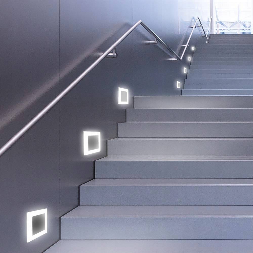- В ступенях. Изделия вставляются в подготовленные вырезы, электрический провод подводится заранее, подключается по аналогии с другими осветительными устройствами. Подходит для деревянных и обшитых другим материалом лестниц. Количество врезов зависит от крутизны и размеров лестничной конструкции.