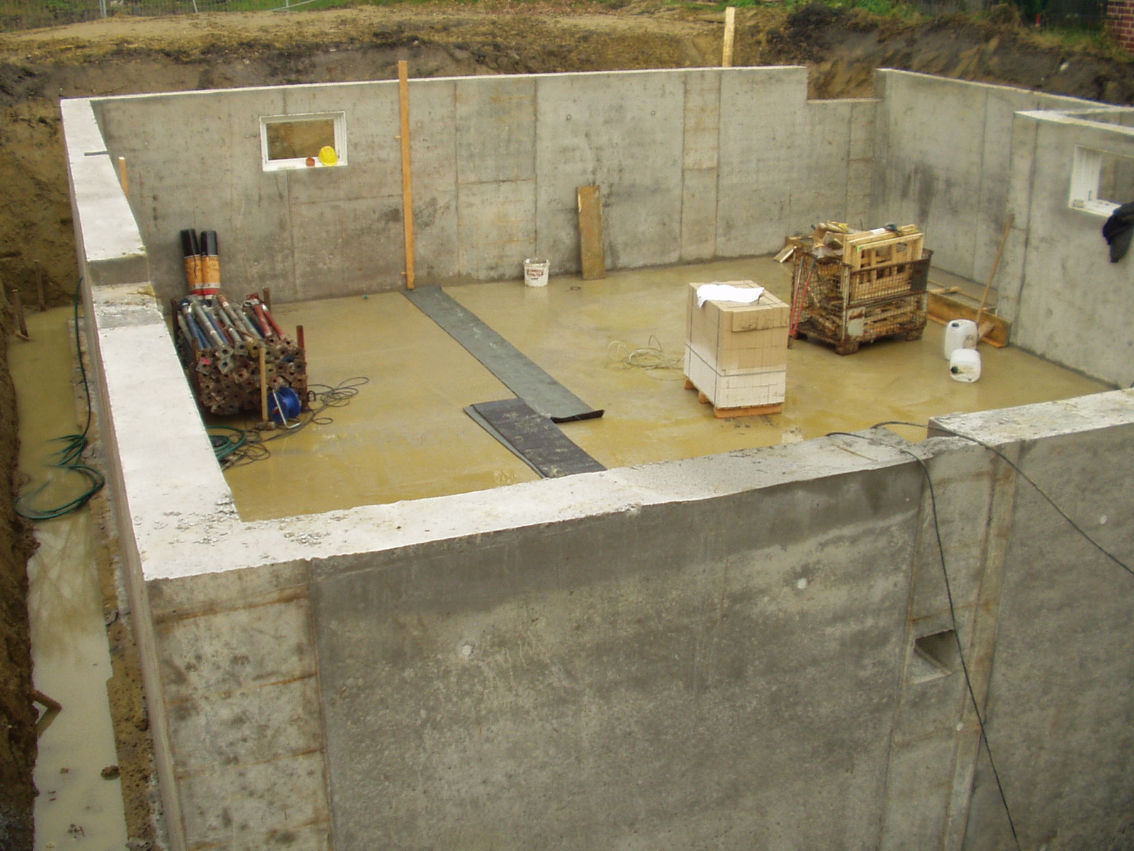 Чтобы залить бетонный пол в подвале до возведения стен,