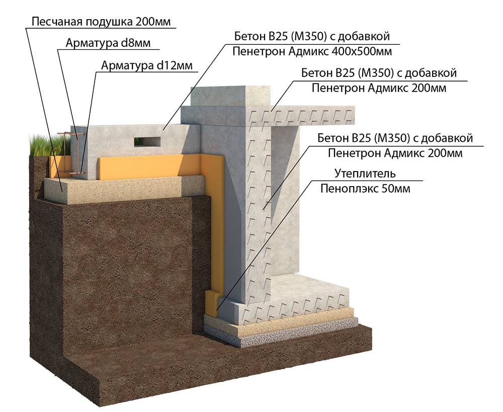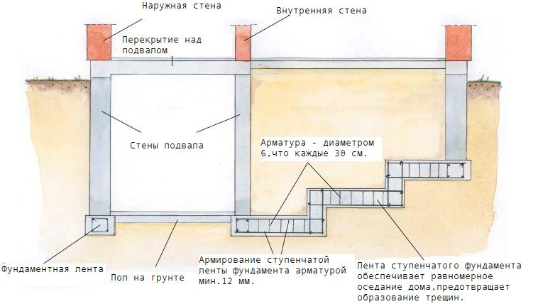 Возможный фундамент с цокольным этажом