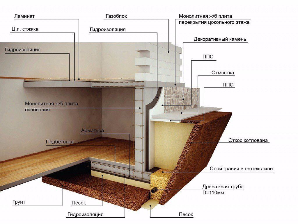 вод, начинать строительство подвала под домом лучше всего с пола. Если
