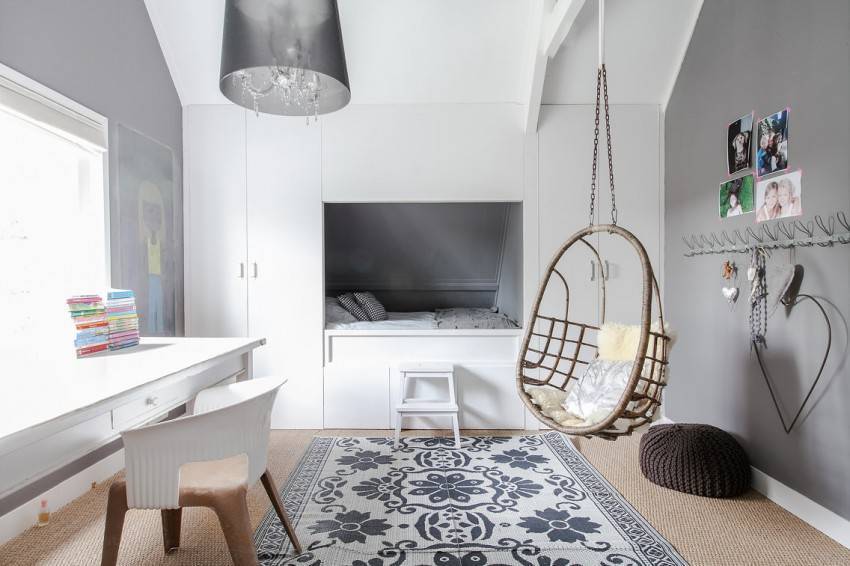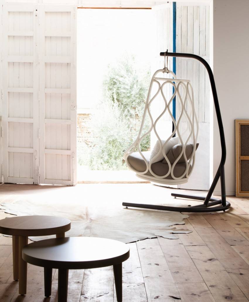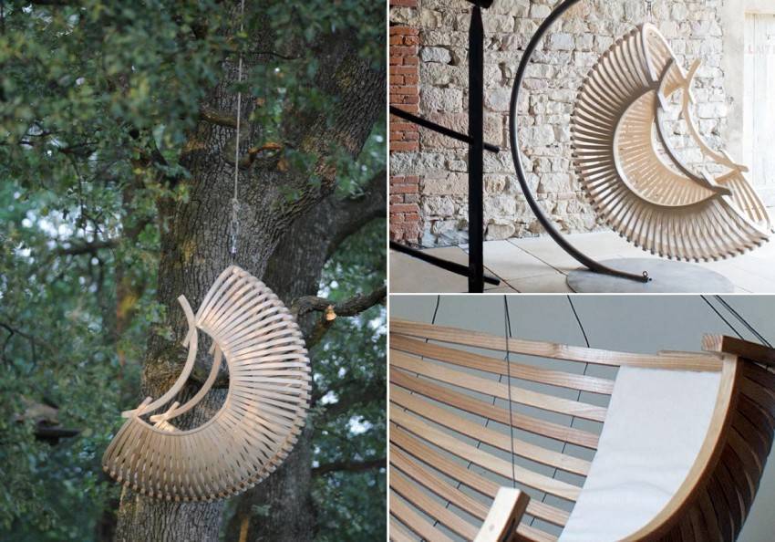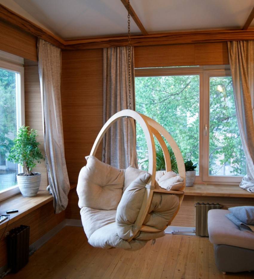 Подвесная модель, расположенная на веранде, в спальне или в тени деревьев привнесет изюминку в домашний интерьер. Изделие для раскачивания станет любимым местом детворы и взрослых.