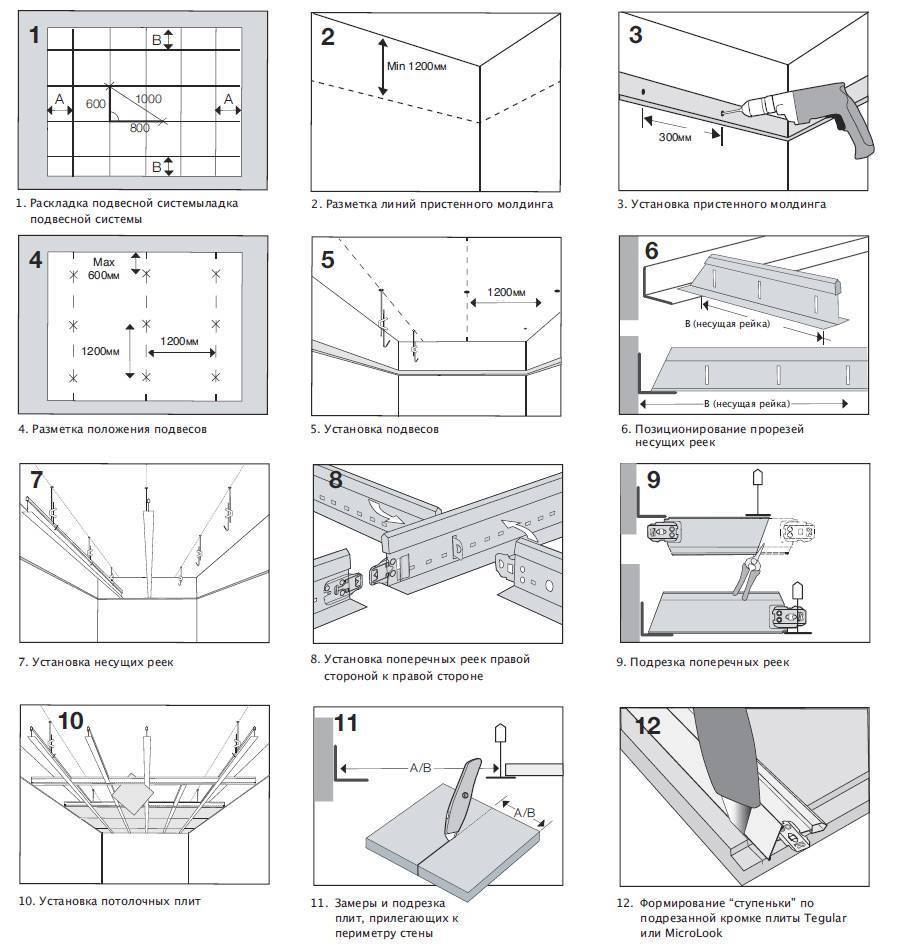 Таблица 2. Последовательность монтажа потолка Армстронг.