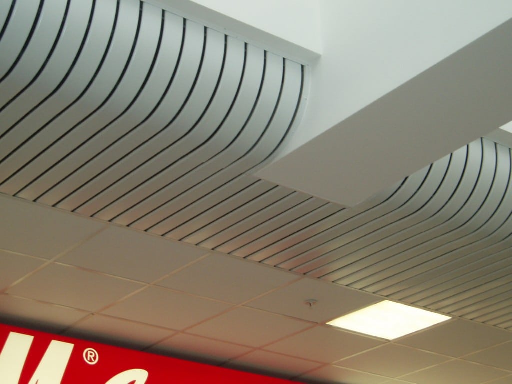 - В большом помещении потолочные панели придется сращивать, а значит нужно покупать реечный потолок, укомплектованный промежуточными вкладышами, делающими места стыков максимально аккуратными, незаметными.