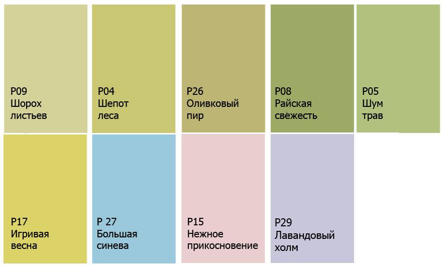 Преобладают неяркие цвета – светло-зеленый, бежевый, сиреневый, молочный.