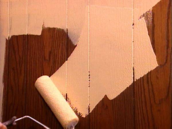 шаг 5. Наносят краску, прижимая валик к дереву с равномерным усилием.