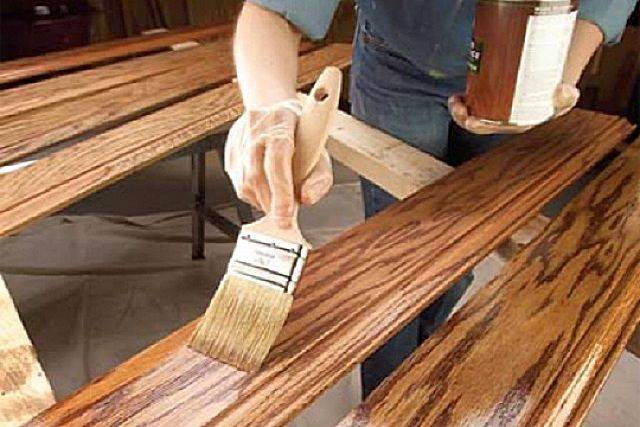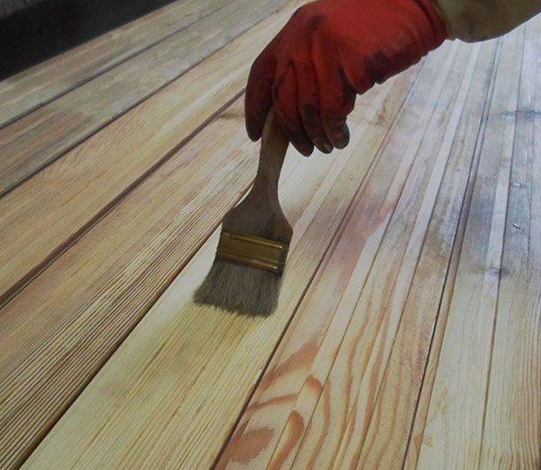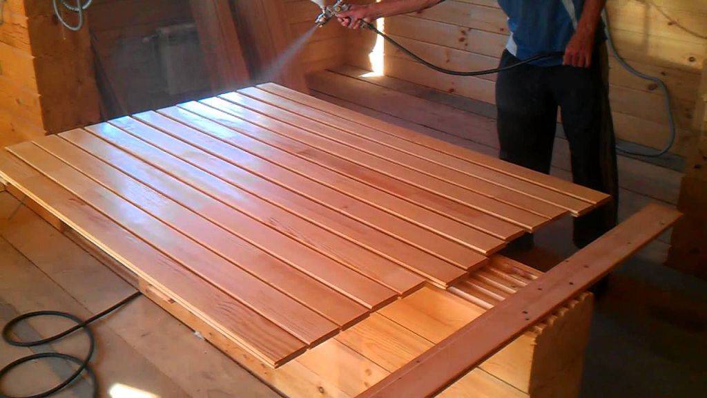 Для влажных условий эксплуатации в неотапливаемых комнатах, на верандах, террасах нужна обработка средствами для повышения влагостойкости. Только после этого наносят лак, красят или декорируют определенными приемами. Некоторые сорта дерева требуют повторного нанесения предохраняющего средства.