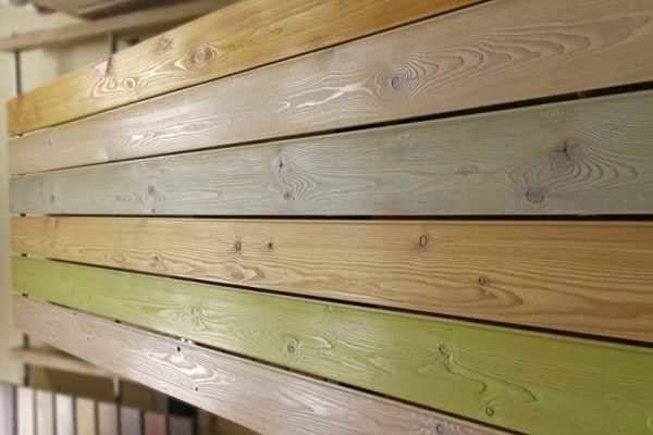 Есть препараты для более яркого выражения древесноволокнистой структуры. Палисандр, лиственница, орех, карельская береза отличаются оригинальным рисунком, который нужно сохранить и усилить. Используют лазурь, воск, пигментированные олифы, масла, различные лаки. В итоге волокнистый рисунок становится ярче, чем в необработанном виде, в бороздах текстуры собирается больший объем пигмента, а на выступающих частях — нет. Прием называют текстурированием или брашированием вагонки. Покрашенная так древесина смотрится привлекательно на потолке и вертикальных поверхностях.