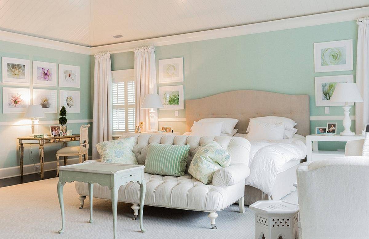 - Мятный, светло-зеленый. Гармонируют со стилями «шебби-шик», «прованс».