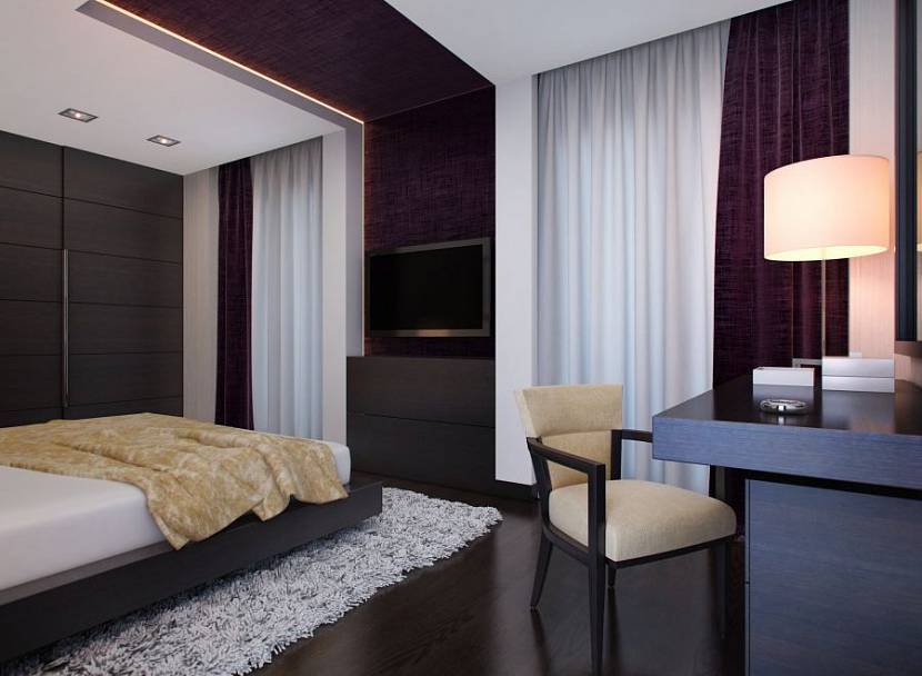 Насыщенный сиреневый в спальнеИсточник houzz.com