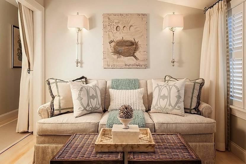 Мебель пастельных тонов смотрится изящно, ее уместно разместить внутри небольших помещений, чтобы не загромождать пространство.