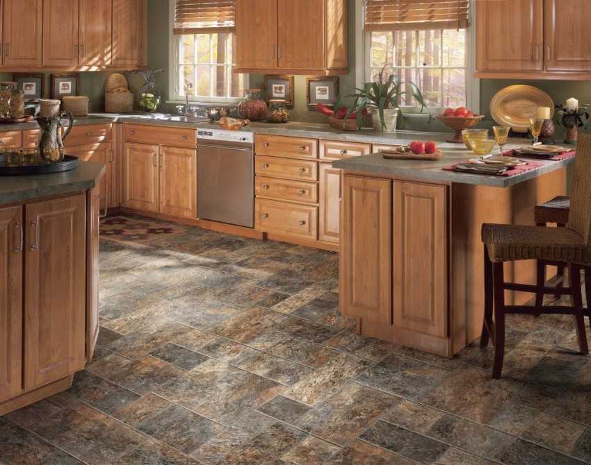 Камень и агломерат для пола на кухне. Плитка для кухни на пол