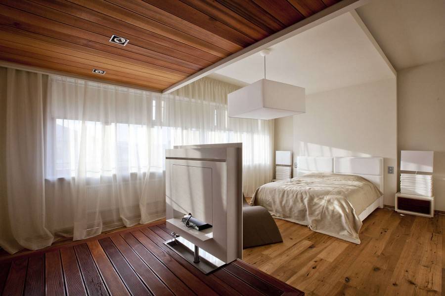 - по всей площади, отделанный древесиной, не всегда выглядит хорошо, особенно в тесных помещениях.