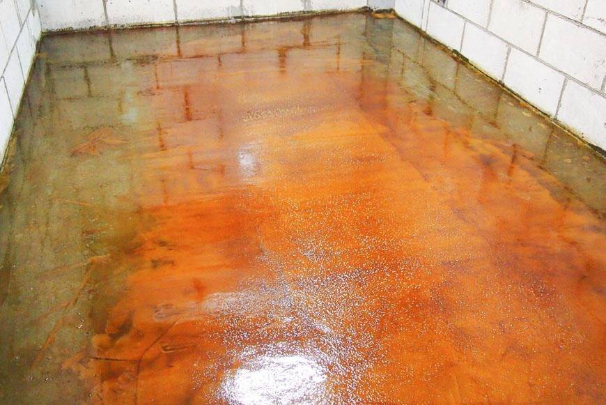 Полимерный состав хорош тем, что он проникает вглубь материала через поры. Из-за этого укрепляется структура бетона, эксплуатировать такой пол можно очень долго. Но нужно сказать и про слабые стороны, которые присущи материалу. К ним можно отнести то, что заливать пол нужно, строго контролируя влажность основания. Если вы невнимательно подойдете к этому вопросу, то полимерное покрытие может отслоиться.