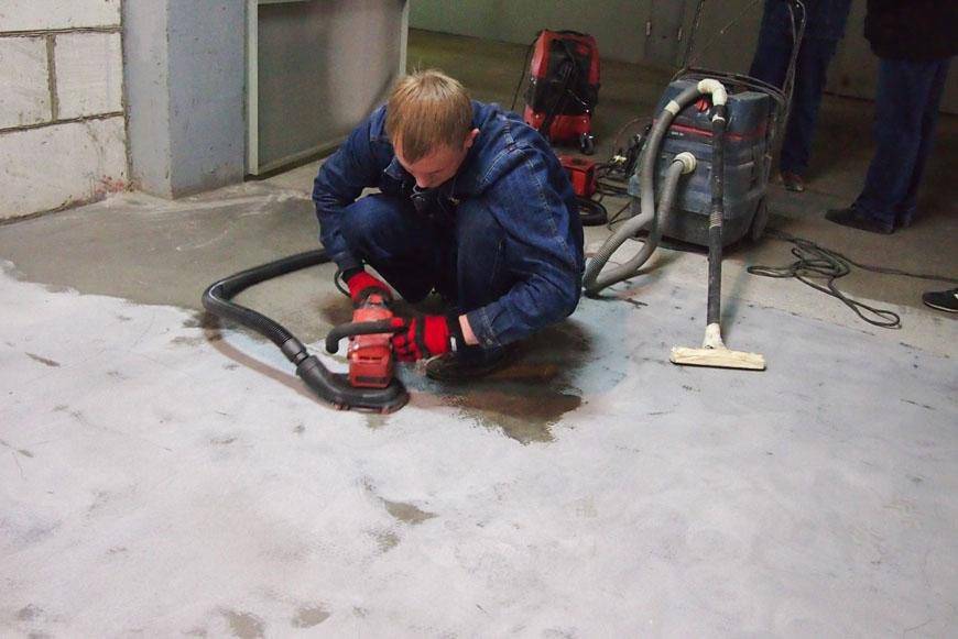 Шаг 1 — подготовка рабочей поверхности. Прежде всего, специалисты выполняют шлифовку пола, чтобы устранить неровности, которые могут помешать протяжке. Затем осуществляется очистка рабочей поверхности от пыли