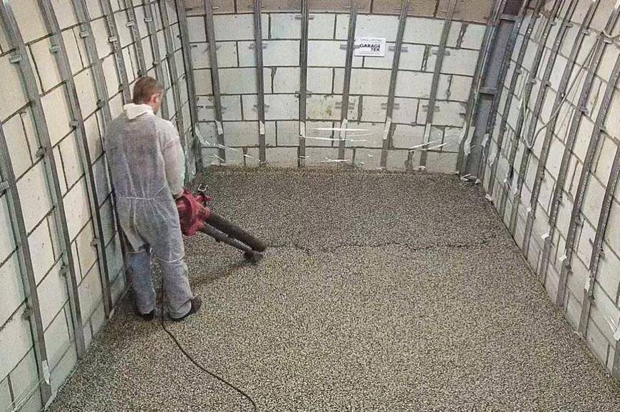 В последнее время чаще автовладельцы стали применять сухую стяжку с засыпкой керамзитом. В этом случае керамзит засыпается на полиэтиленовую пленку, тщательно выравнивается, а сверху на него укладываются плиты ГВЛ.