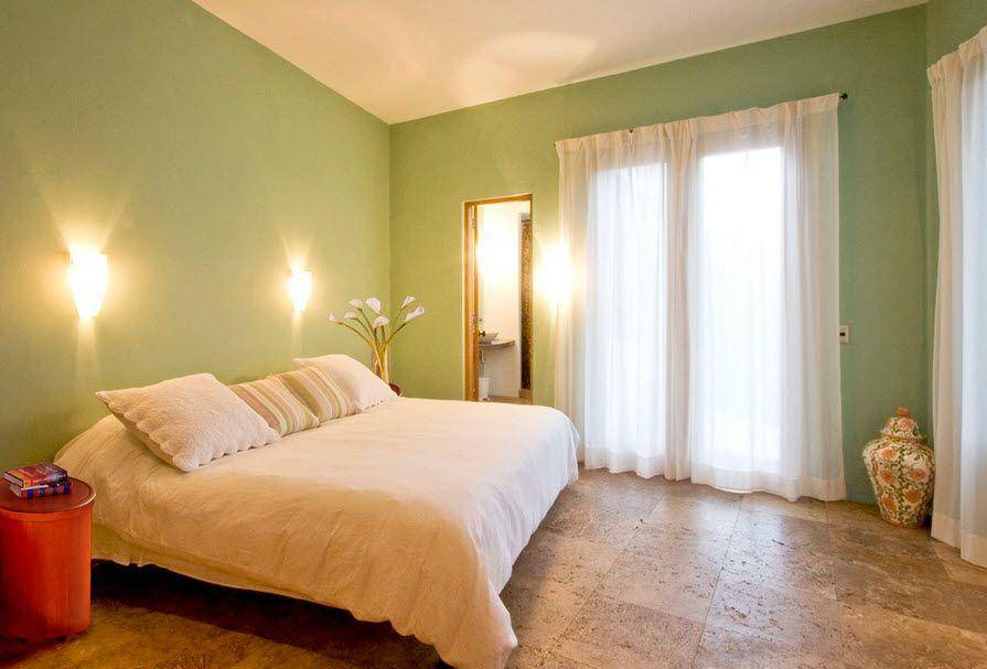 - керамическая плитка в интерьере спален используется очень и очень редко, ведь это холодное покрытие. Если же есть необходимость дополнить помещение именно такой отделкой, а спальня выполнена, например, в классическом стиле, то обязательно нужно предусмотреть систему теплых полов. Это касается каменного и бетонного полов, которые сегодня считаются неотъемлемым атрибутом спальни в стиле лофт;