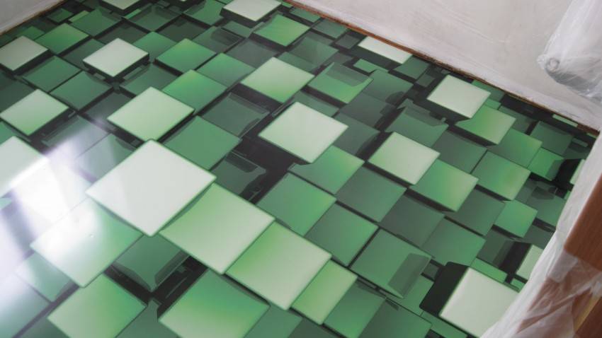 Качественные полимеры позволяют создавать различные эффекты для наливного пола, такое покрытие может быть однотонным и пестрить яркими цветами.