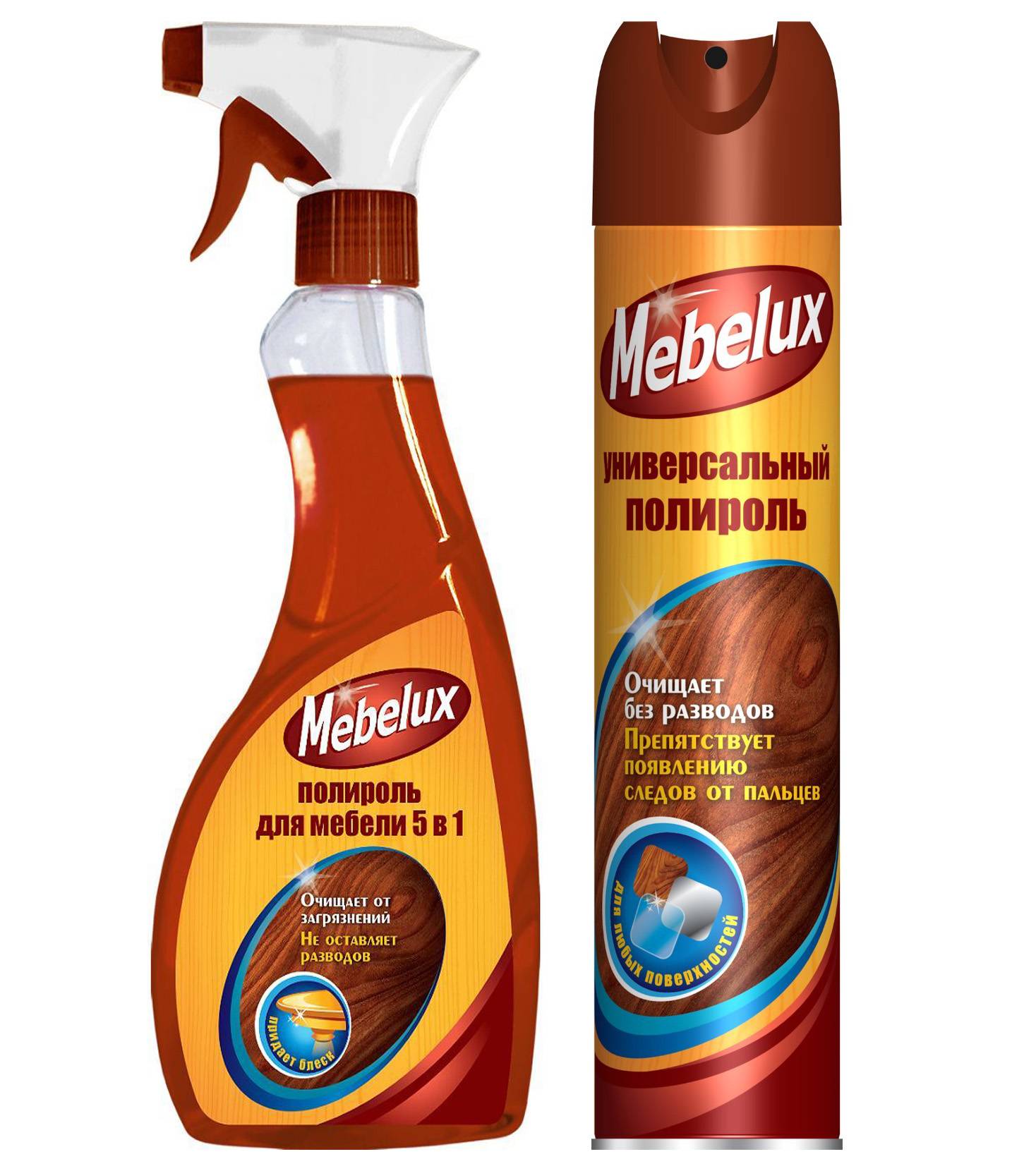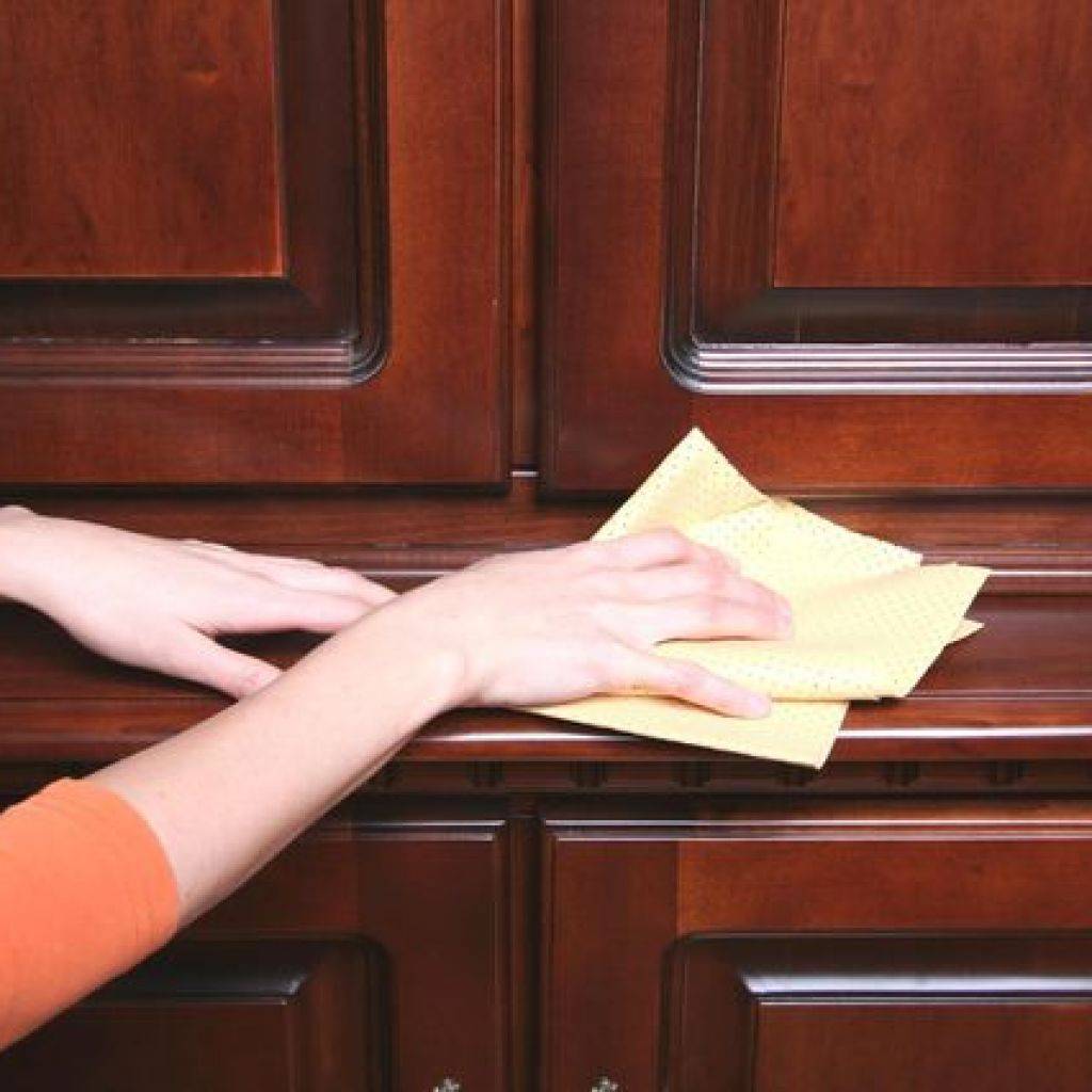 Если в доме есть деревянная лакированная мебель и ее надо освежить, то можно использовать полироль для дерева в аэрозоле или жидкое средство. Хороший эффект дают в этом случае составы с силиконами.
