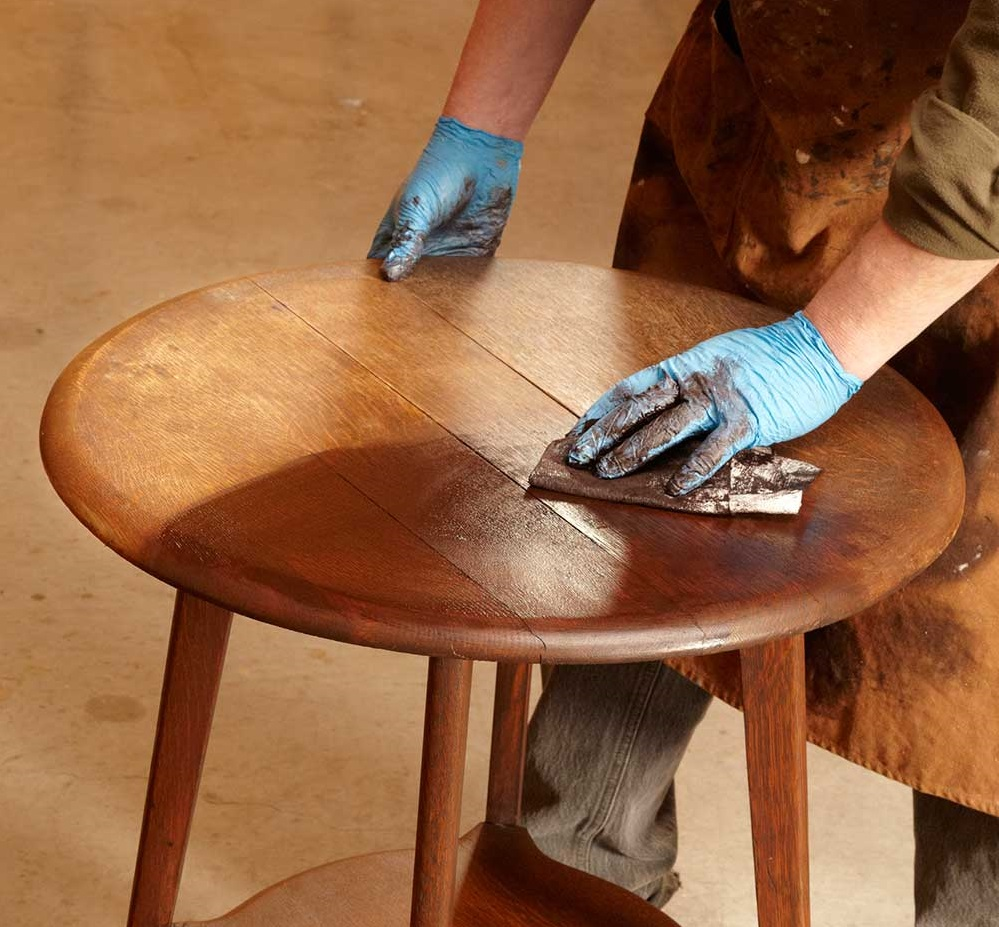 Процесс не отличается сложностью и может быть выполнен своими руками в домашних условиях. При обработке восковой мастикой четче проявляется естественная текстура древесины, визуально поверхность приобретает мягкость и бархатистость. Способ отлично зарекомендовал себя на твердых породах дерева — таких, как ясень, орех, дуб. Мягкие породы, такие как береза, ольха и липа для большего эффекта предварительно тонируют.