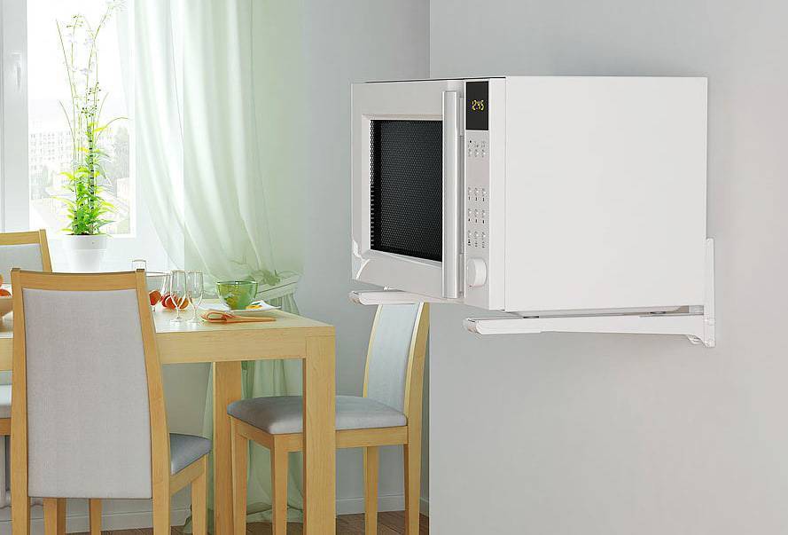 На заметку! Многие производители микроволновых печей предлагают покупателям приобрести кронштейны для каждой конкретной модели, что значительно упрощает поиски подходящей опоры, экономит время и деньги.
