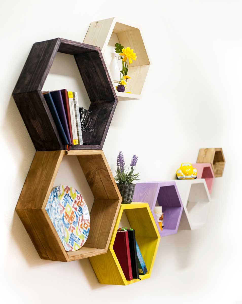 - Деревянную полку можно ярко выкрасить, расписать вручную или по трафарету;