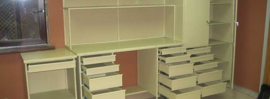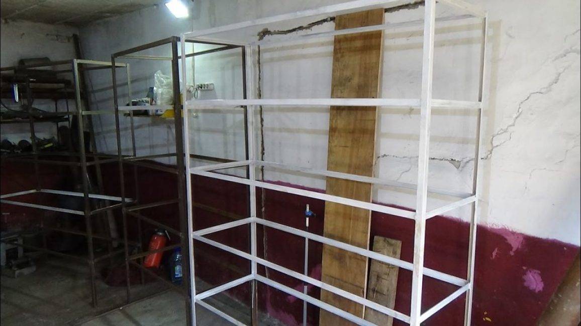 Металлические изделия делают из перфорированного уголка, профильных труб, сочетая их с деревянными материалами, чтобы сделать конструкцию легче. Чаще всего встречаются стеллажи из профиля, которые отличаются своей легкостью и прочностью.