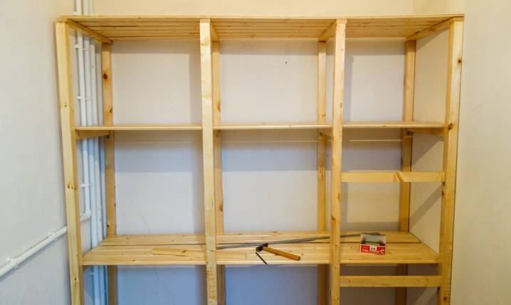 В этом случае вам нужны будут деревянный брус под каркас и простые доски для полок.