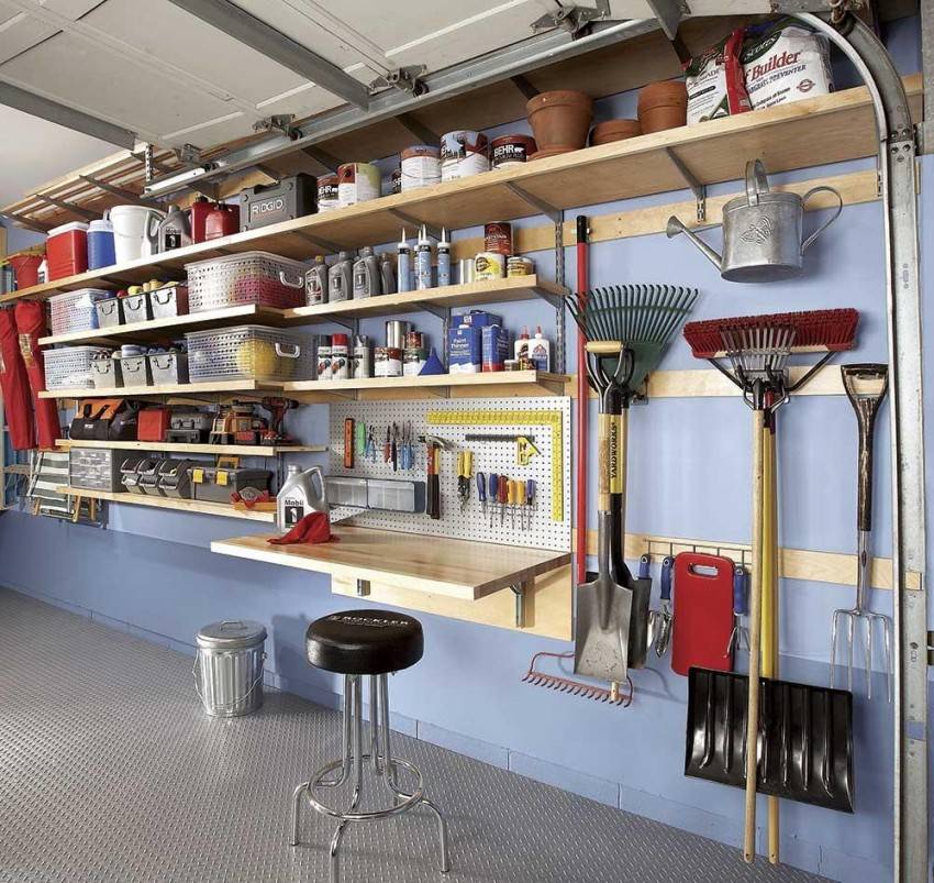Пространство гаража можно использовать по-разному, но общей закономерностью будет стремление к расположению всех объектов максимально удобно, чтобы они не занимали много места и не захламляли пространство
