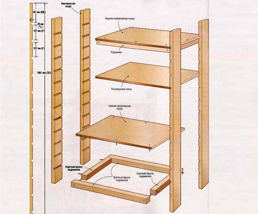 Профессионалы рекомендуют тщательно продумать все детали для изготовления полок и стеллажей своими руками, это касается также и типа конструкции.