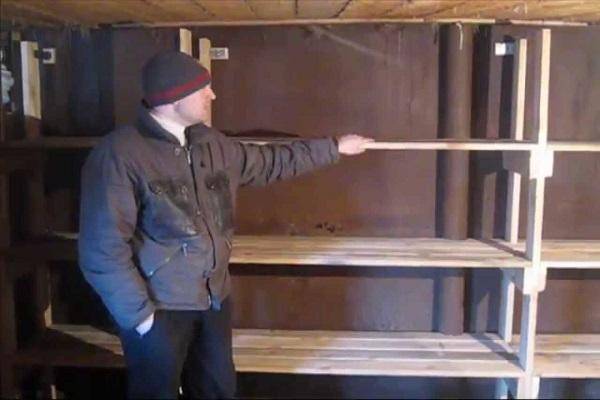 Такой же деревянный стеллаж своими руками можно поставить на лоджию для хранения разных вещей, в кладовку под консервацию, или в погреб под те же нужды.