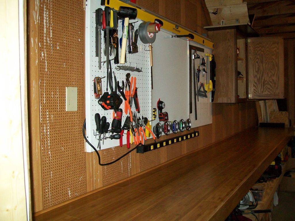 На полочках в гараже можно хранить инструмент, который не слишком часто нужен для выполнения тех или иных работ