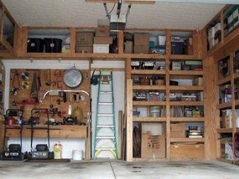 Таким образом, своими руками можно изготовить подвесные, навесные, угловые полки или разместить их над воротами. Только самодельная конструкция позволяет максимально оптимизировать использование пространства в гараже.