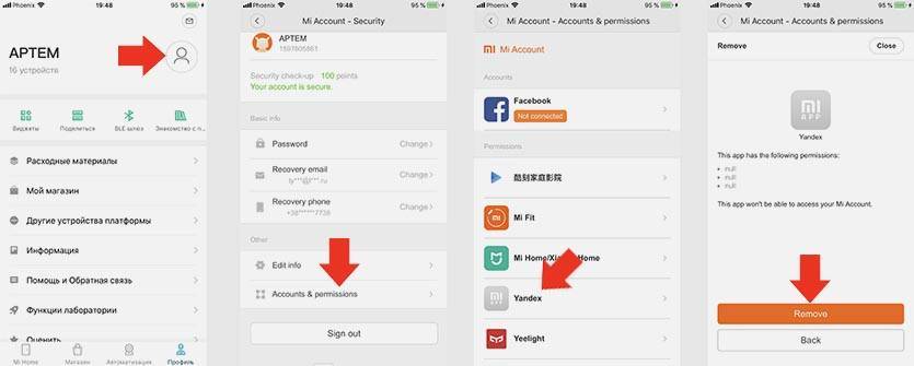 4. Находим раздел Yandex и подтверждаем отвязку сервисов.