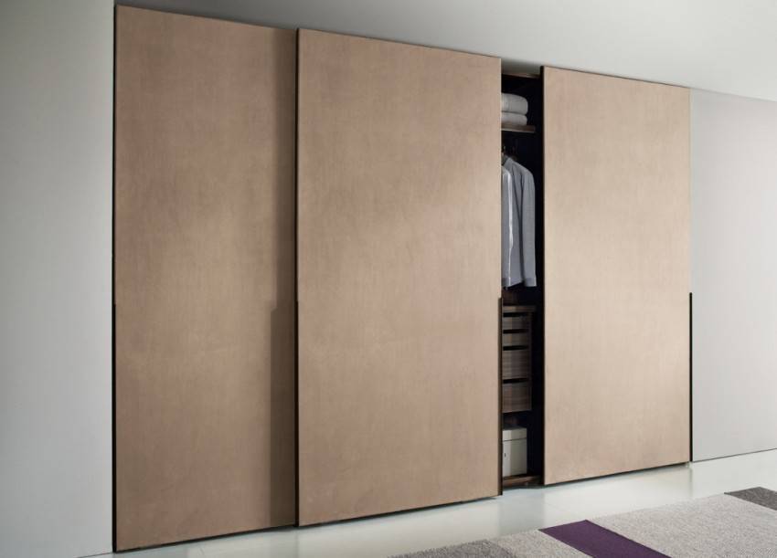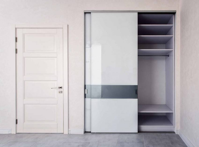 Раздвижной тип дверей («купе») сдвигается вбок, что позволяет сэкономить пространство. Для этого установлены ролики, с помощью которых конструкция двигается внутри специальных рамок.