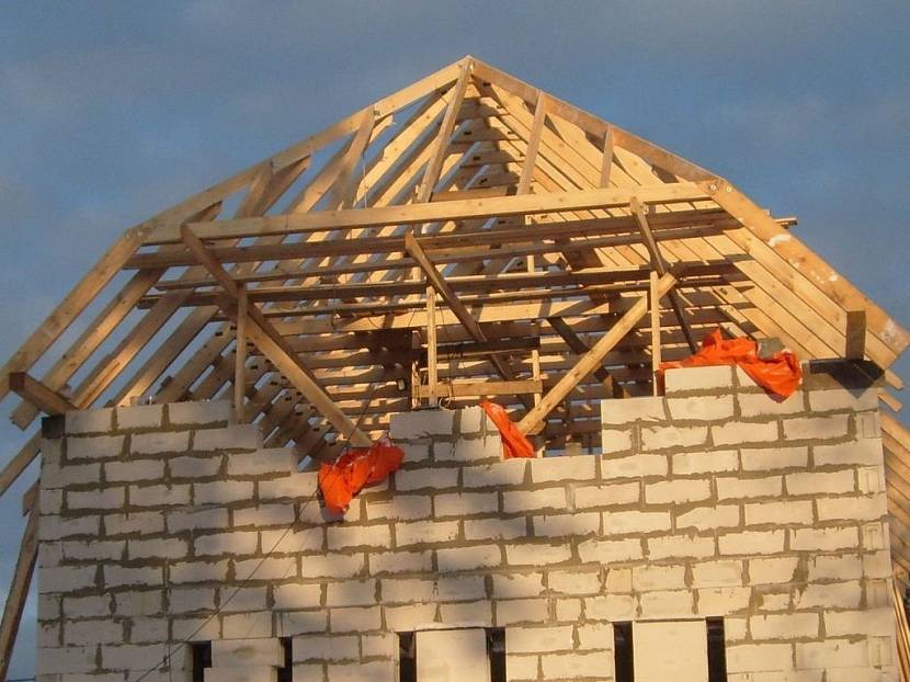 - Для этого типа крыши дополнительно устанавливается мауэрлат на срезанных частях фронтонов.