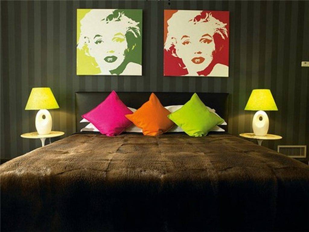 А как применить поп-арт в других интерьерах? Есть ли способ «приручить» его, чтобы он мог быть использован для обустройства спальни или гостиной? Ключом будет пропорциональное использование его выразительного и изобразительного характера. Уравновешивание яркого выражения выиграет от использования золотого правила минимализма «чем меньше — тем лучше».