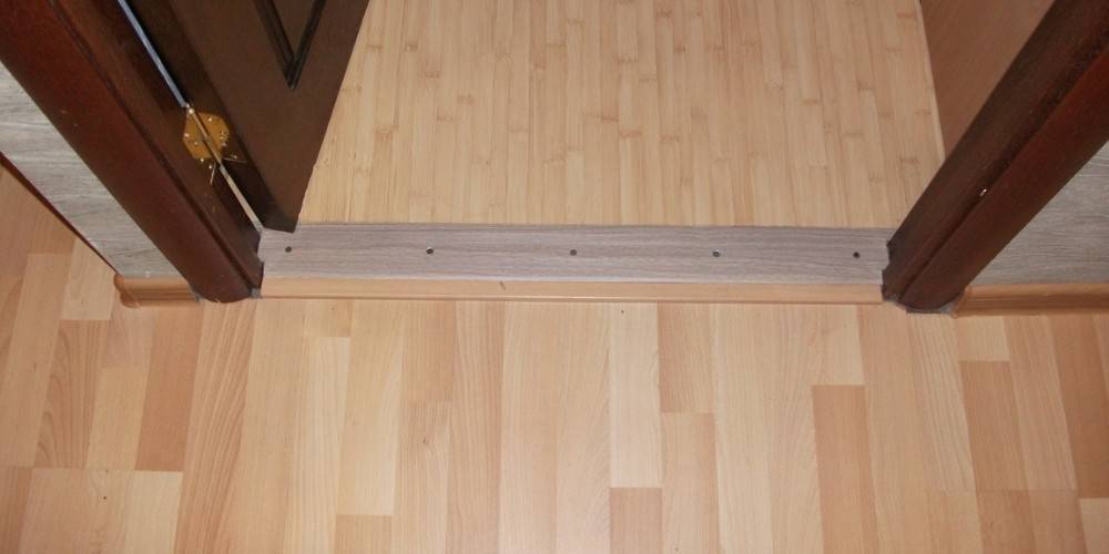 Допустимая погрешность – не более 2 мм. Прямой порожек чаще всего соединяет ламинат, уложенный в соседних комнатах. Поэтому его место под межкомнатной дверью или в открытом проеме.