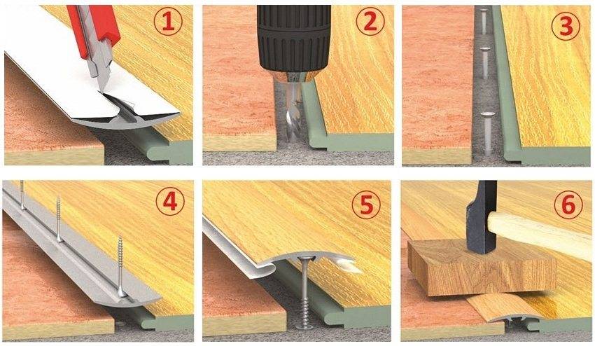 После покупки выбранных декоративных элементов требуется установить порожек на ламинат так, чтобы прочность и качество стыковки продлили срок эксплуатации напольного покрытия.