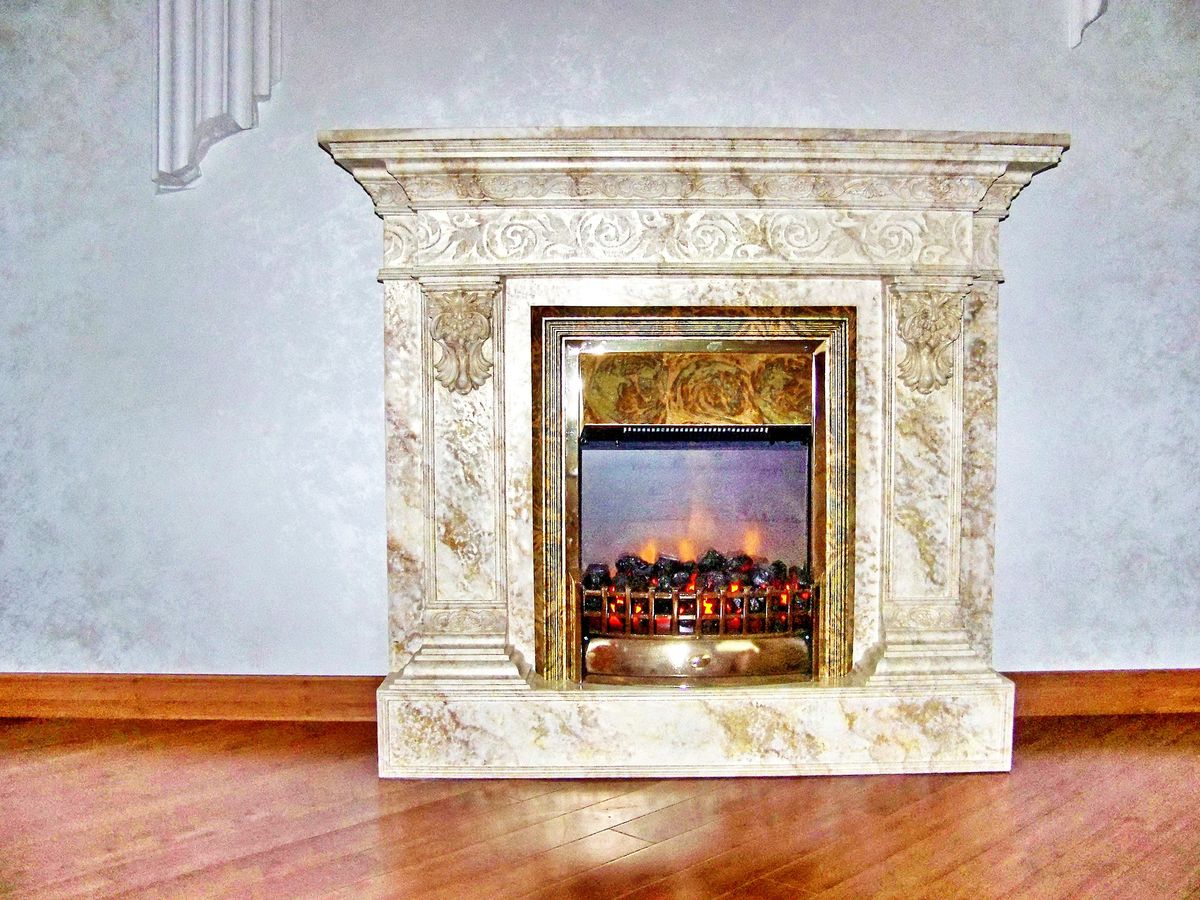 Для декоративных и электрических моделей можно использовать для изготовления портала древесину, полиуретан, пластмассу и гипсокартон. Для каминов с живым пламенем портал делают из камня, кирпича, песчаника и мрамора.