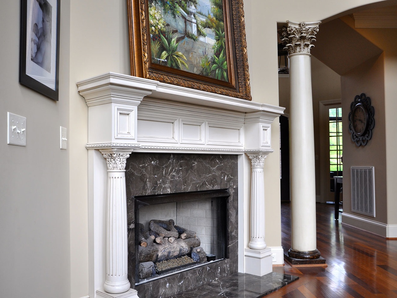 В современный стиль хай-тек или минимализма подойдёт портал, лишённый всевозможных украшений. А классический камин с лепниной добавит помещению дворцового шарма.