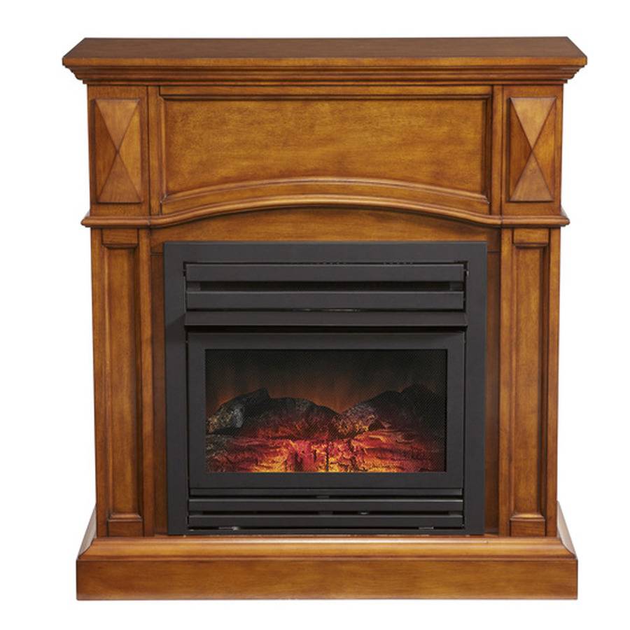 - Условные камины снабжают электрическими очагами. Такое устройство эффектно будет смотреться в темноте. Электрическая подсветка создаёт вид игры пламени. Некоторые модели могут быть снабжены небольшим обогревателем и муляжами поленьев.