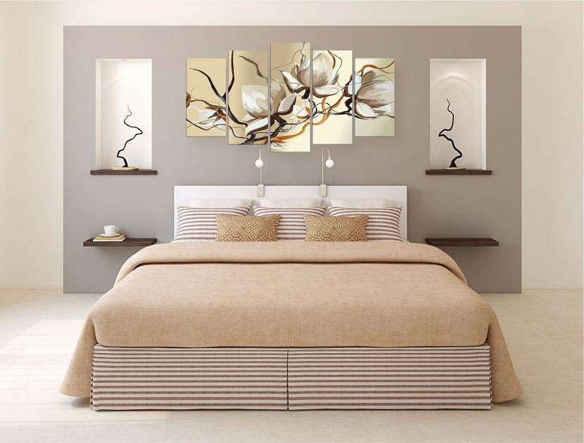 Модульные картины в спальню над кроватьюИсточник decorationinfo.ru