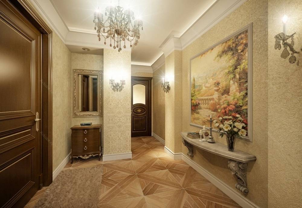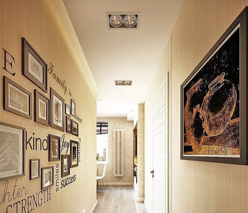 Поскольку в небольшом и узком помещении трудно расставить много мебели, стены часто остаются голыми. Поэтому главной задачей является их украшение. В проходном коридоре нужны интерьерные пейзажи с четким для восприятия сюжетом. Как всегда, для минимализма в фаворе легкий абстракционизм. А вот для классики хорошо подойдет реализм и немного импрессионизма.